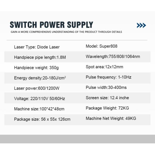| Laser Type: 808nm Diode Laser | Pulse Width: 5-300ms |