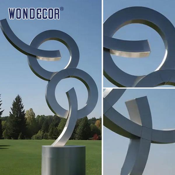 Large outdoor park geometric letter stainless steel sculptures have become a model of modern public art with their all-round advantages: stainless steel material has inherent corrosion resistance and oxidation resistance, which can maintain a long-lasting metallic luster in harsh environments such as acid rain and salt spray. Its high strength and toughness can also resist external impact, ensuring the stability and safety of the sculpture structure; Geometric letter design breaks through traditional sculptural language by deconstructing and reassembling basic elements such as circles, squares, and triangles, endowing letter forms with abstract tension, polishing the stainless steel surface with light and shadow changes that flow with the angle of sunlight, forming dynamic visual rhythms. It not only carries the form innovation of modern art, but also forms a spatial dialogue of virtual and real interaction with the natural landscape of the park; The modular combination method not only supports the iconic presentation of individual shapes, but also activates the site flow through array layout. The letter hollow structure creates interactive spaces that can be traversed, making sculpture a dual carrier of cultural symbols and public memory; The ultra-low maintenance cost, self-cleaning characteristics of rainwater, and repairability of damage make this art installation perfectly fit the urban concept of green and sustainable development