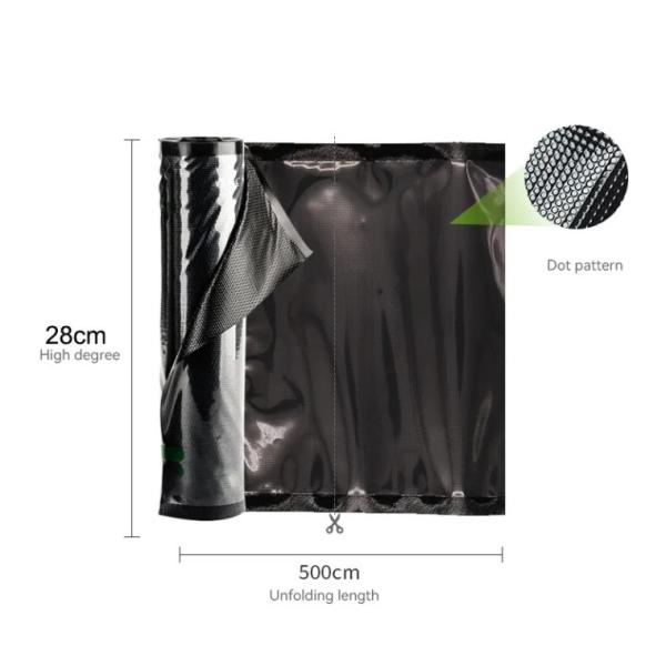 | Product basic information | Product Name | Commercial Grade Heavy Duty Black And Clear Embossed Vacuum Seal Roll Bags For Food Storage For Sushi And Noodles |