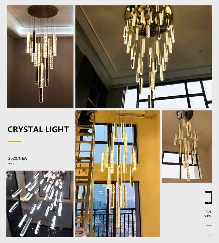 3000K-6500K Color Temperature Crystal Chandelier LED Ring for Modern Hotel Lobby Staircase Villa