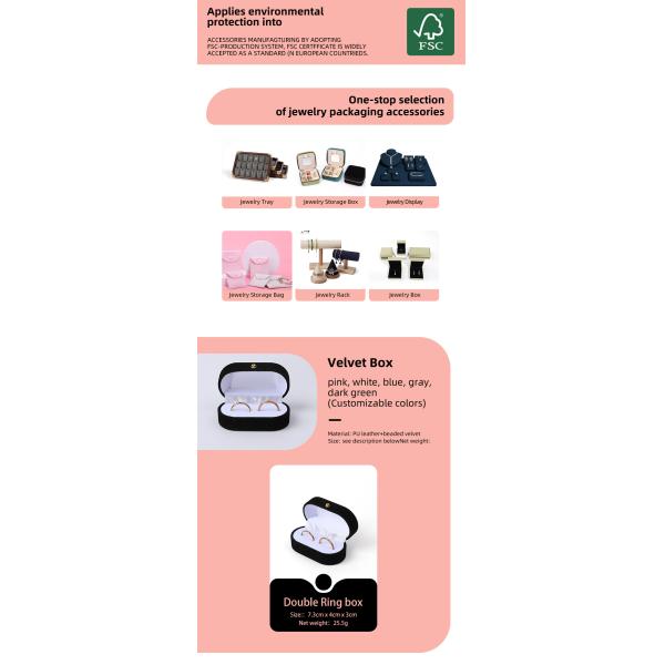 Personalized Custom Black Velvet Jewelry Packaging Wedding Engagement Double Ring Luxury Jewellery Box