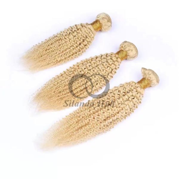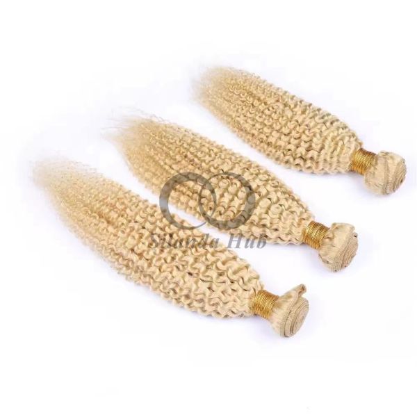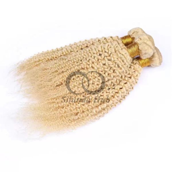 Model Name: #613 Bleached Blonde Kinky Curly Remy Human Hair Bundles Sew In Weave Bundles Brazilian Bundle Deals
