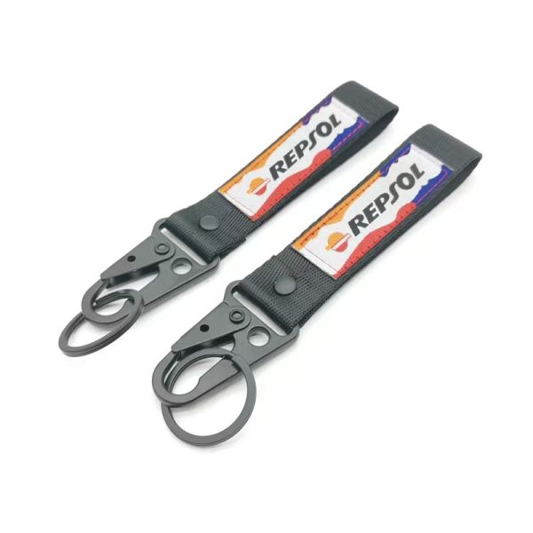 REPSOL-Style Woven Lanyard Keychain - Vibrant Jacquard Logo & Anti-Slip Hardware - Ready-to-Gift Packaging