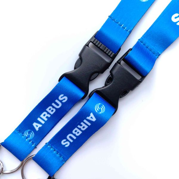Custom Airbus Blue Polyester Lanyards with Safety Breakaway Clasps - Corporate ID & Event Accessories - Waterproof Print + ODM/OEM