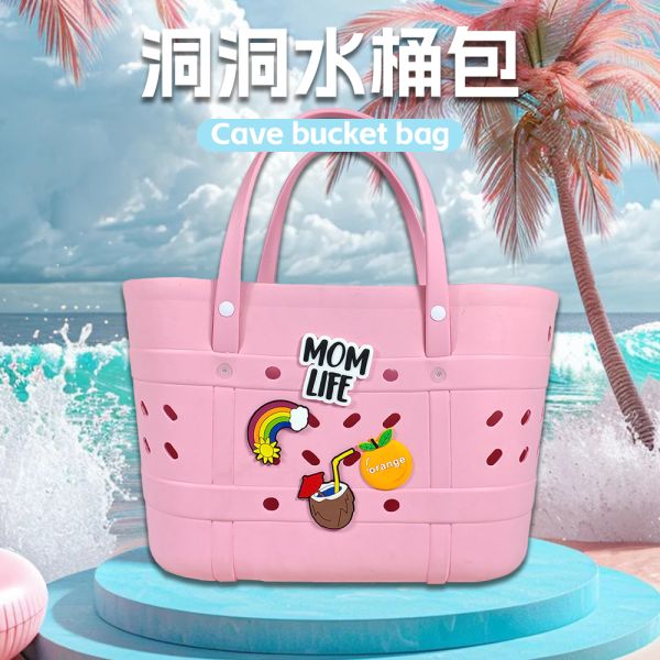 Medium Beach Bag, Waterproof Rubber Beach Bag, Washable Open Tote Bag Durable Tote Travel Bags