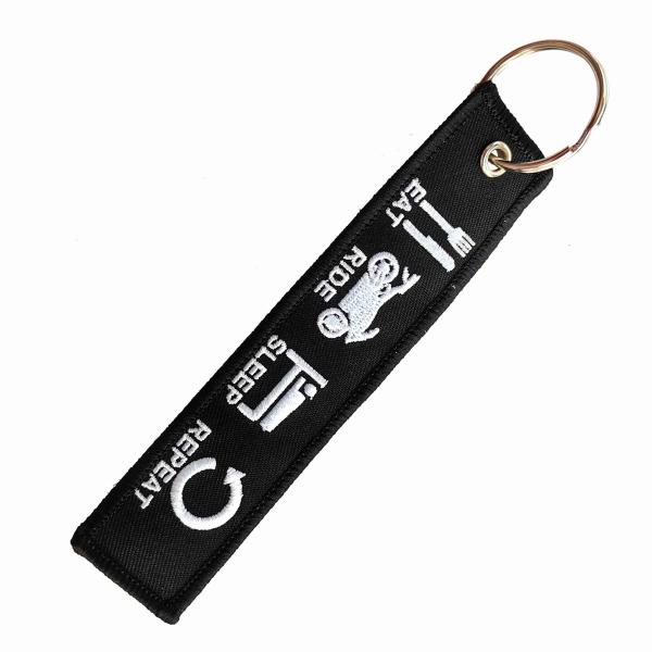 3-Pack Embroidered Cycling Keychains - Motivational 'Eat Ride Sleep' Design + Motorcycle Accessories/Outdoor Gear + Durable Fabric & Metal Rings + Gift-Ready Bundle