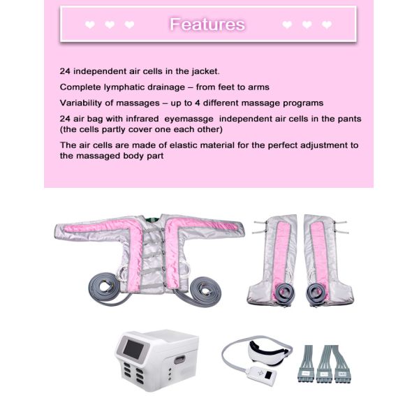Plastic surgery-pre/post liposuction(edema reduction) Aesthetic salons -cellulite treatments, adjunctive treatment for vacuum roller(vacuomobilization) massage.Spa/home use -cellulite treatments, massage and relaxatior
