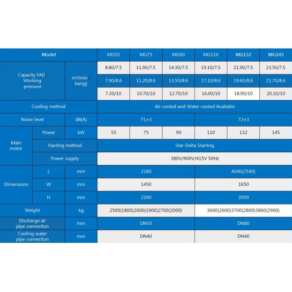 145KW Low Power Frequency Oil-free Dry Screw air Compressor Water-cooled 0 Grade Oil-free