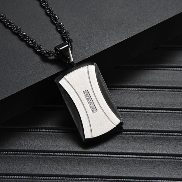 Stainless Steel Square Pendant Necklace for Men Christian Pendant With Blue Inlay Chain Necklace