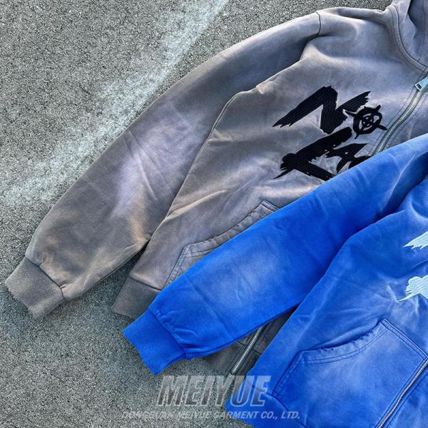 Custom Vintage Distressed Acid Washed Embroidery Logo Hoodie Streetwear Sun Faded Cotton French Terry Zip up Hoodies With Zipper