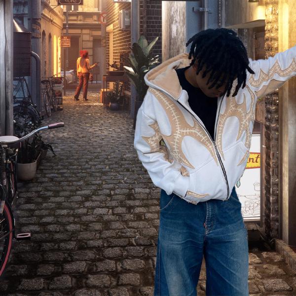 French Terry Streetwear Oversized Cropped Men's hoodies Jacket |