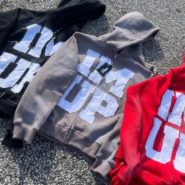 Custom Men's Hoodie Embroidered Patch Streetwear Letter Applique Embroidery 100 Cotton Zip up Mens Zipper Hoodies