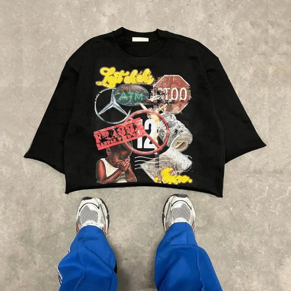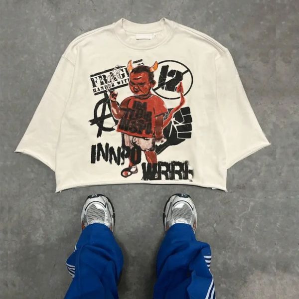 Printed Drop Shoulder T-shirt Boxy Cropped T Shirt For Men |