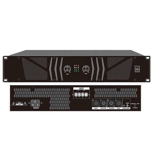 1. The device features a 2U chassis design, boasting a compact size and light weight. 2. It utilizes the latest Class D amplifier design, offering low distortion and high efficiency. 3. The power supply utilizes a PFC+LLC switching power supply, offering extremely high efficiency and global compatibility. The switching power supply technology effectively suppresses power supply harmonics. 4. An intelligent peak limiter ensures that the power module and speaker system operate within a safe range. 5. Soft-start prevents high current draw from the power grid during startup, potentially disrupting other devices. 6. An intelligent controlled forced cooling design ensures low fan noise and high heat dissipation efficiency. 7. 2-channel broadcast output of 1500W.
