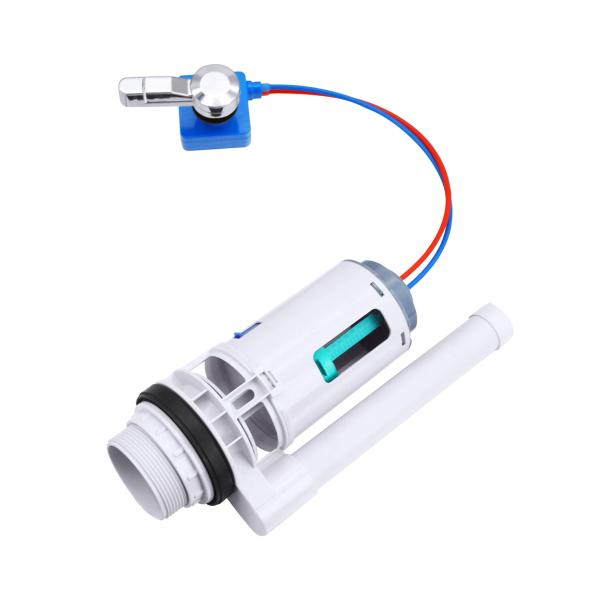 Adjustable cable controls bathroom fixtures. The dual-level flush valve is made of durable ABS material