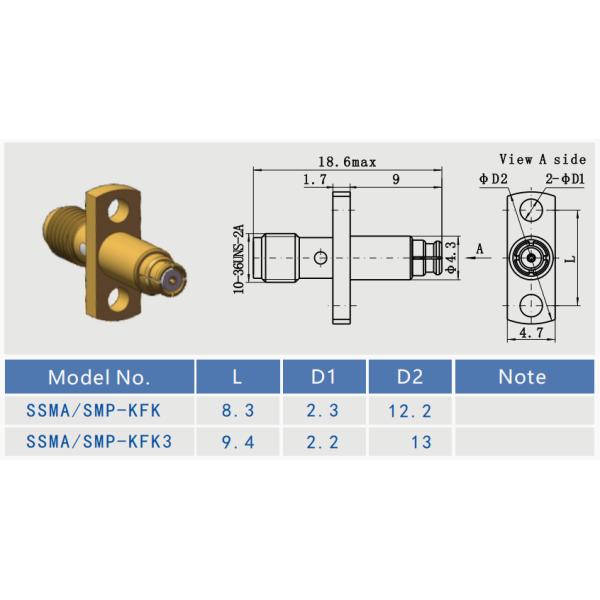 Outline Dimension of SSMA to SMP Female to Female 2 Hole Flange Mount Adapters SSMA/SMP-KFK1: