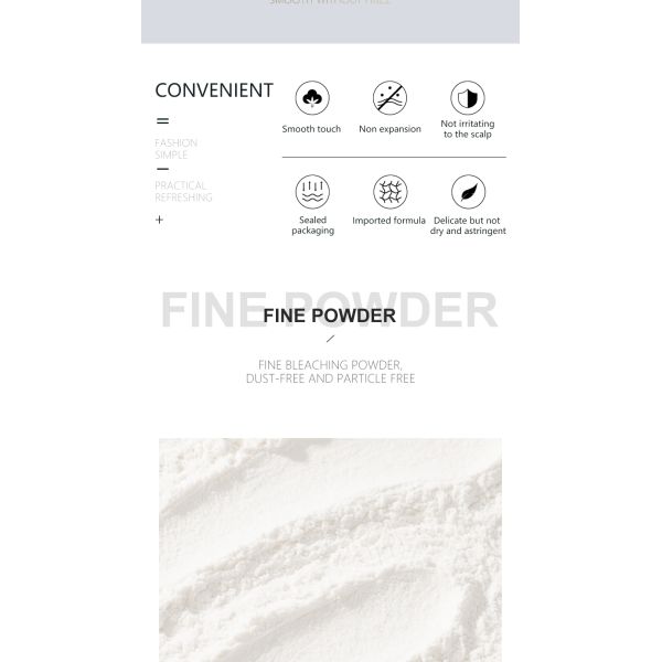 Our Hair Bleaching Powder, proudly manufactured in China, brings professional salon-quality lightening performance within easy reach—whether for at-home use by experienced enthusiasts or professional stylists. It stands out for its impressive efficiency: with a processing time of just 45–55 minutes, it lifts hair color by 8–9 levels, making it versatile enough to handle both subtle brightening (e.g., softening dark brown to light brown) and bold, head-turning transformations (like dark hair to platinum blonde). This efficiency eliminates the need for prolonged processing, reducing the risk of overexposure that can damage hair.