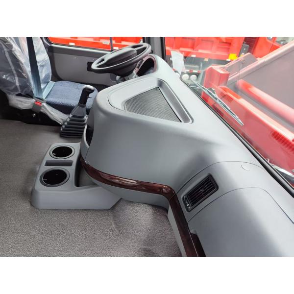 • Inside the cab: Equipped with an adjustable leather driver’s seat, air conditioning, and a multi-functional steering wheel (with audio and cruise control buttons), significantly reducing driver fatigue during long shifts. The cab also has a reinforced safety frame (meeting international rollover protection standards) and shock-absorbing suspension, ensuring driver safety in bumpy or emergency situations.