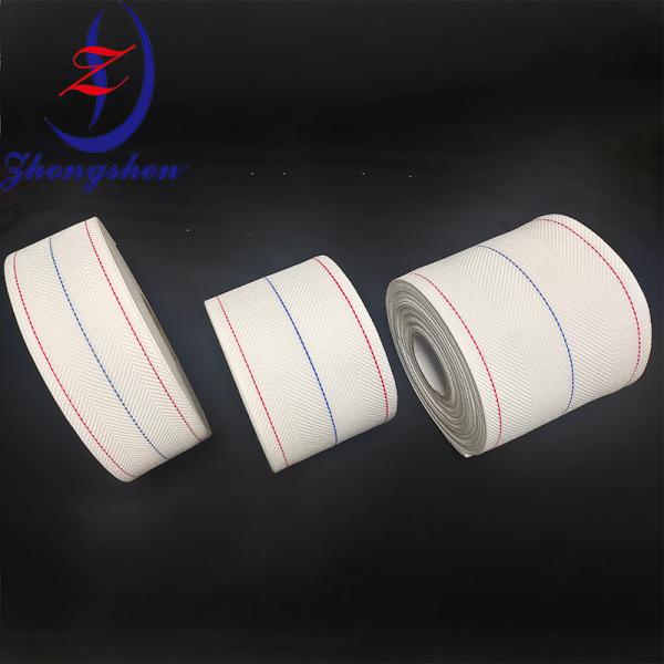 specifications: Width: 100mm, length customized as required. Color is white base with a blue line in the middle and red lines on both sides.