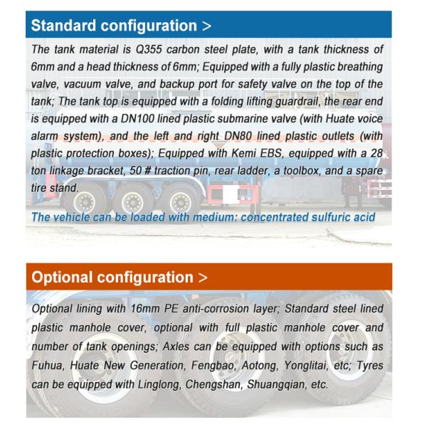 Product name: Tri-axle concentrated Sulfuric Acid Tanker Semi Trailer