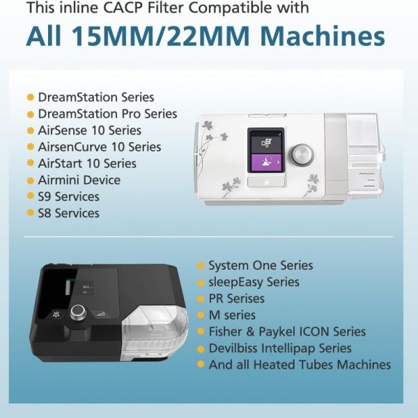Introducing our premium One-Time Use CPAP Filters, specifically designed as Disposable Breathing Device Filters for CPAP machines. Our CPAP Inline Filter is compatible with ResMed & Dreamstation CPAP And BiPAP Machines, ensuring a perfect fit and optimal performance.