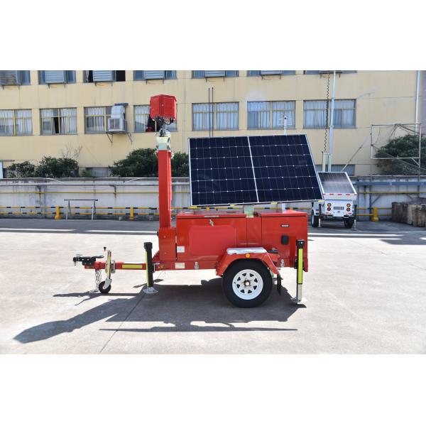Suitable for parking lot surveillance. The folding solar-powered surveillance trailer has a relatively compact and lightweight overall structure. It can perform surveillance without affecting the entry and exit of vehicles.
