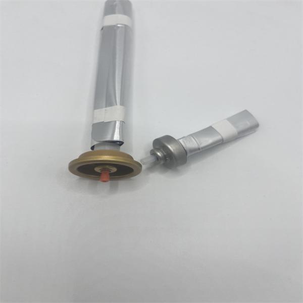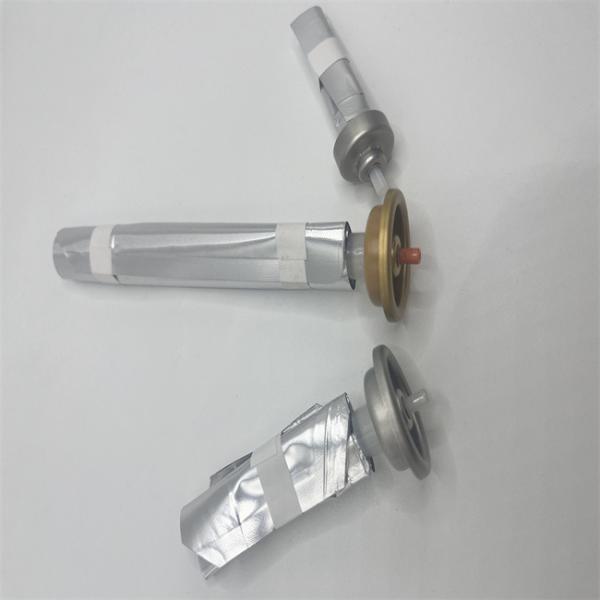 The Bag-on-Valve (BOV) is an advanced aerosol dispensing technology featuring a multi-layer laminated pouch permanently fixed to a valve system within a canister. The product formula remains isolated in this sterile pouch while inert propellant (compressed air or nitrogen) fills the space between pouch and canister. Actuation compresses the pouch via propellant pressure, delivering pure product through the valve without propellant contact. The male thread design provides secure connection to female canister receptacles.