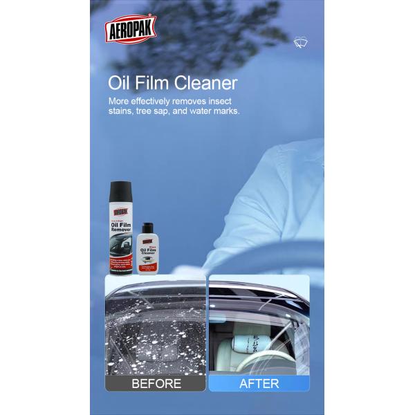 AEROPAK Oil Film Remover is the ideal solution to remove stubborn stains from your car windows or other glass surfaces without damaging the glass. It can remove tough oil film and water stains, enhancing visibility. The powerful formula of car glass cleaner makes it easy and quick to eliminate tough oil film and water stains from the glass, enhancing night and wet weather visibility.