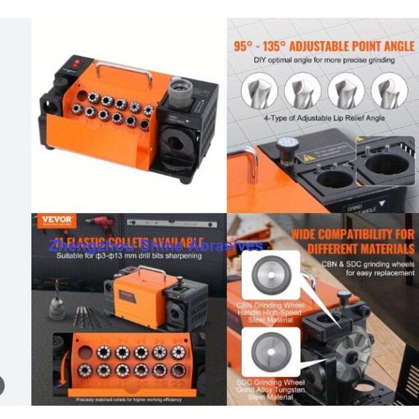 03: CBN wheels are usual for HSS bits, but the Diamond wheels are usual for soild carbide drill bits.
