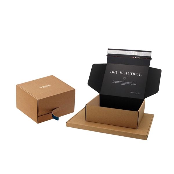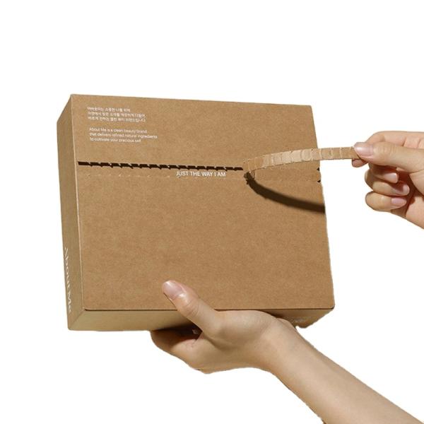 Recyclable Mailer Corrugated Box Flat Kraft Paper Box With White Logo Packaging Zipper Tear Sealing Box For Cosmetic