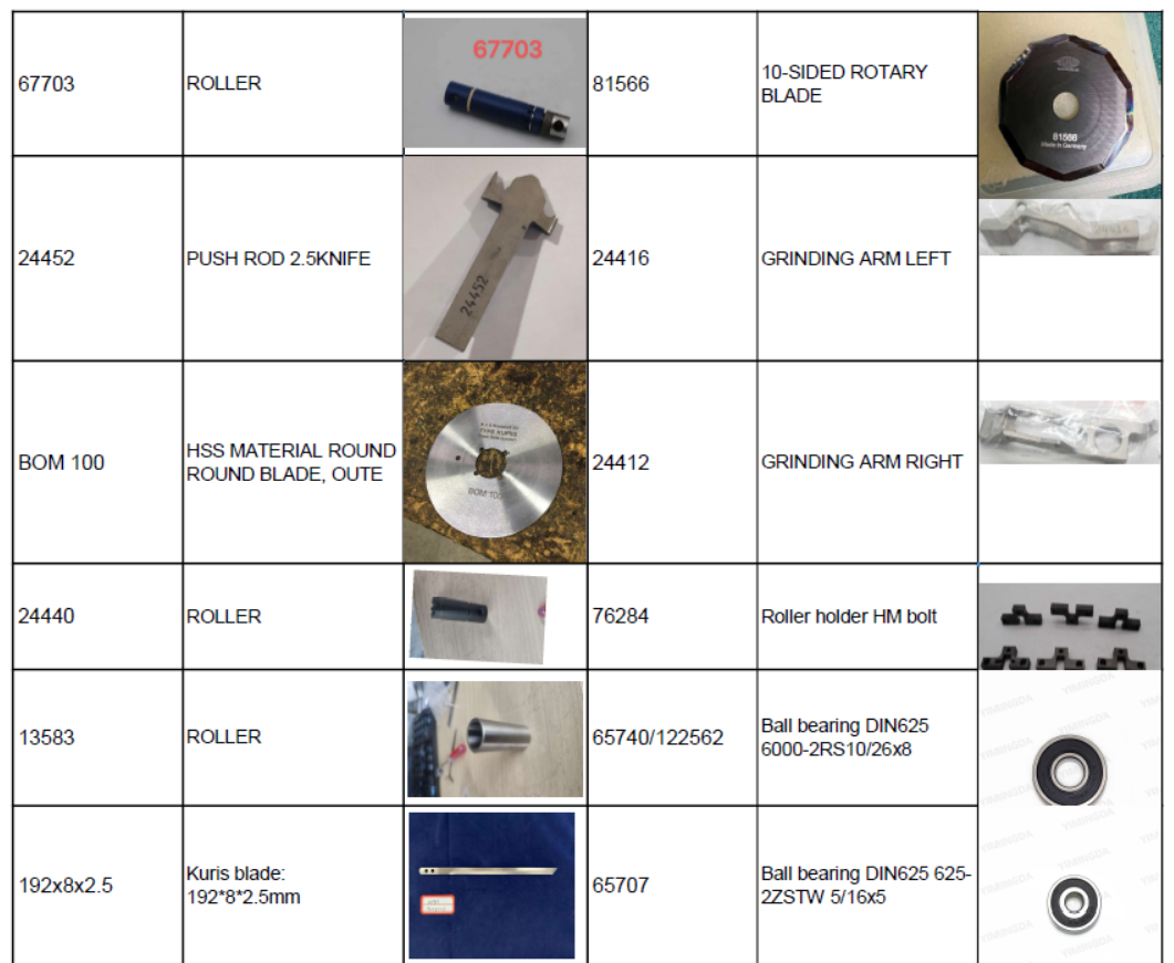 Auto cutter machine spare parts:
