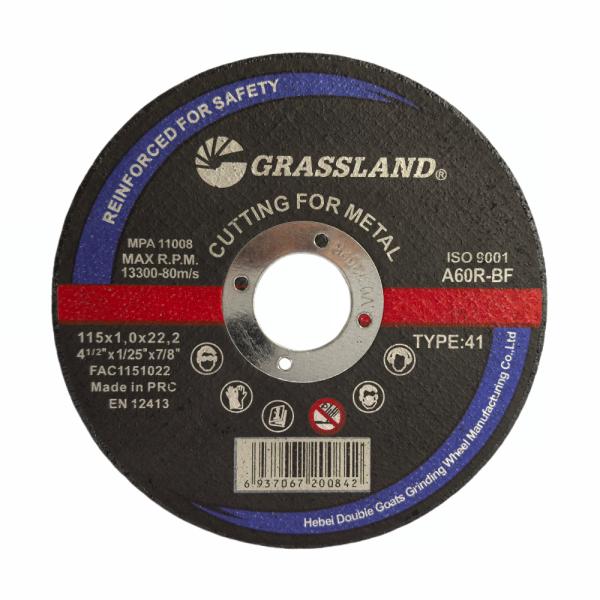 Grassland Metal Inox Cutting Off Wheels is designed to be used with a high-speed cutter, such as an angle grinder, circular saw, portable circular saw, or die grinder. The abrasive wheel makes fast, clean cuts in steel, stainless steel, and other ferrous metals. Made with tough aluminum oxide, heat-treated aluminum oxide, or silicon carbide abrasive grain and double-reinforced with high strength fiberglass, these cutting wheels