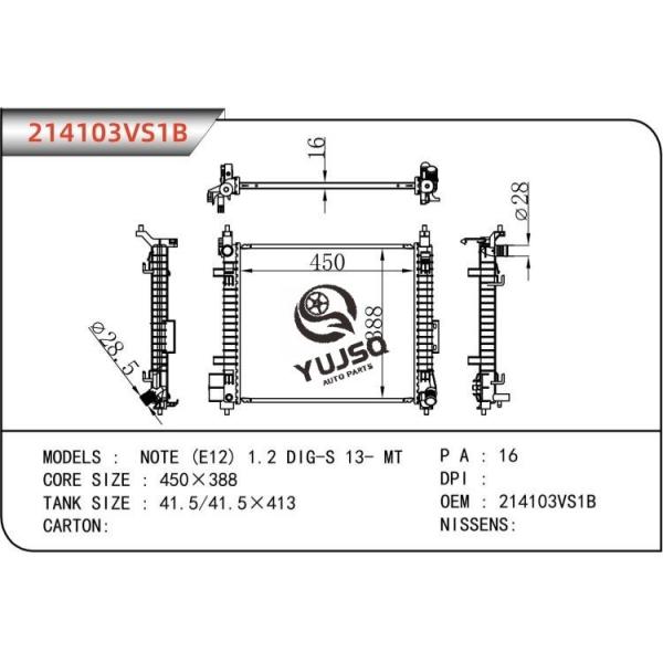 Buy Aluminum Plastic Radiator 21410-3VS1B for Nissan NOTE 1.2 DIG-S at wholesale prices
