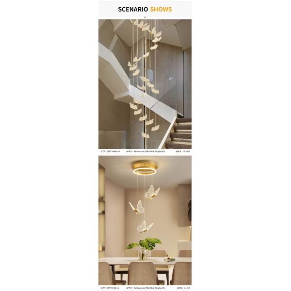 Buy Modern Stairs Chandelier Acrylic Butterfly Shape Duplex Living Room Dining Room LED Stairs Light Pendant Hanging Lamp at wholesale prices
