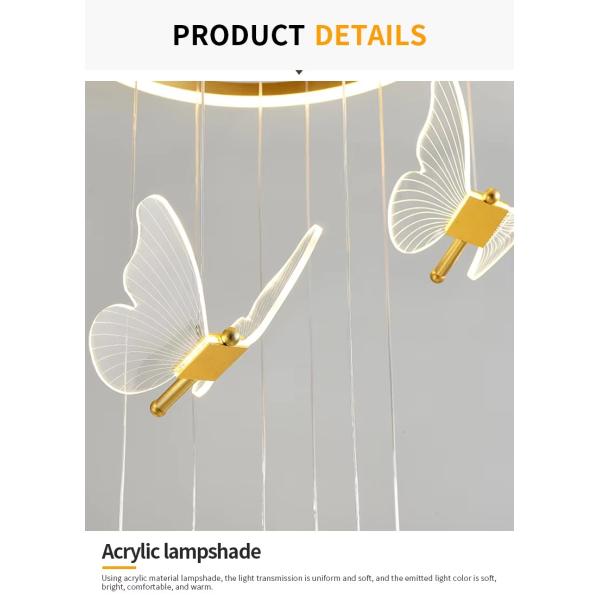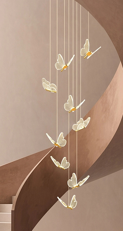 Modern Stairs Chandelier Acrylic Butterfly Shape Duplex Living Room Dining Room LED Stairs Light Pendant Hanging Lamp