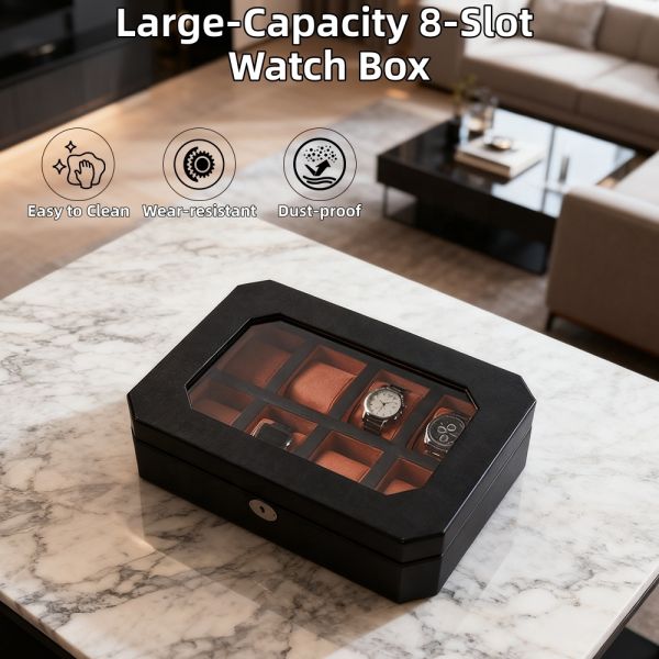 Custom Handmade Pu Leather Luxury Brand 8 Slots Key Lock Watch Box Organizer Case