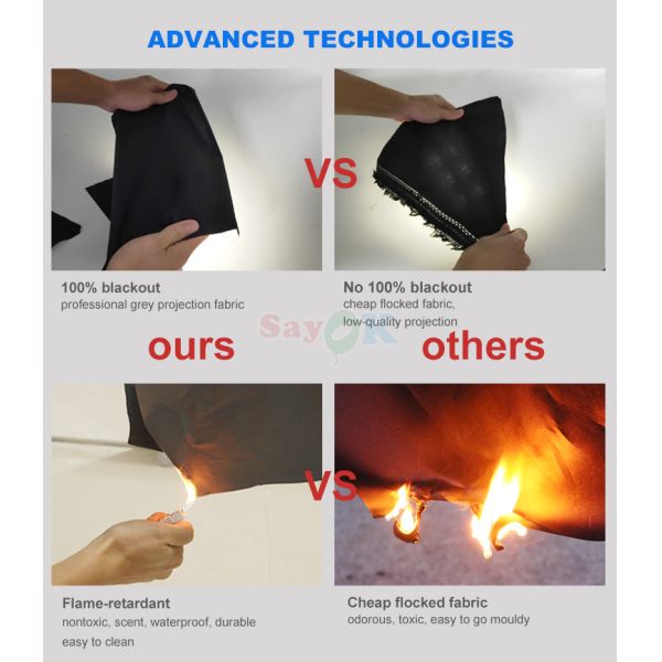 Cheap flocked fabric, not 100% blackout, odorous and toxic, easy to go mouldy.
