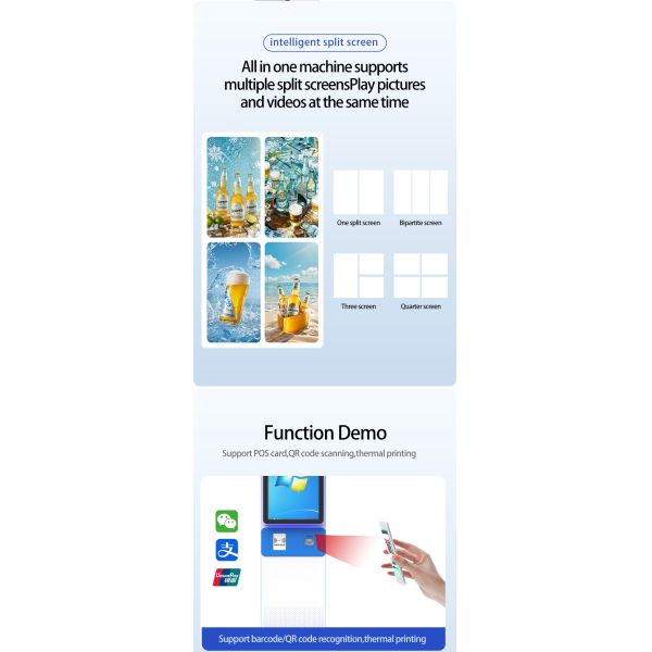 Engineered for seamless integration across diverse high-traffic environments, it excels in: ✅ Restaurants (self-ordering/payments) ✅ Retail Stores (self-checkout) ✅ Coffee Shops (express service) ✅ Malls (wayfinding + promotions) ✅ Transport Hubs (ticketing) ✅ Pharmacies (prescription management) Deploy the perfect configuration to streamline customer interactions anywhere – combining aesthetic versatility with enterprise-grade functionality.