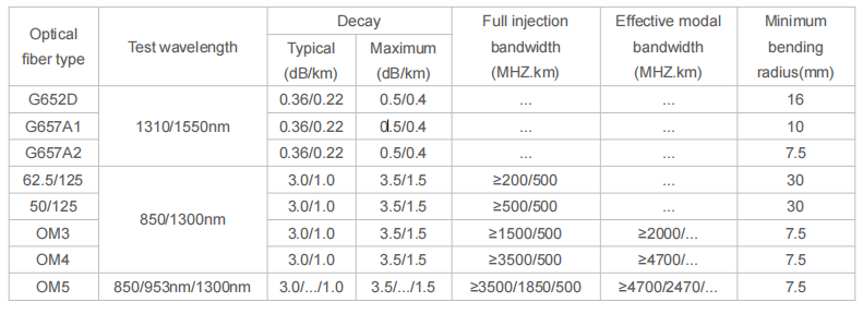 Optical fiber Coating diameter(±5µm): 250μm