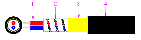 The tight buffer fiber wrapped with a layer of steel wire , and aramid yarn as strength member units,The outermost layer is extruded with a layer of polyvinyl chloride PVC or PU polyurethane,LSZH (low-smoke, halogen-free, flame retardant) jacket.