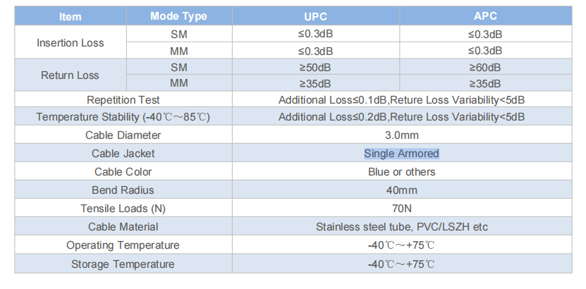 LC/APC-LC/UPC Armoured Patch Cord LSZH/PVC SM/MM UPC and APC