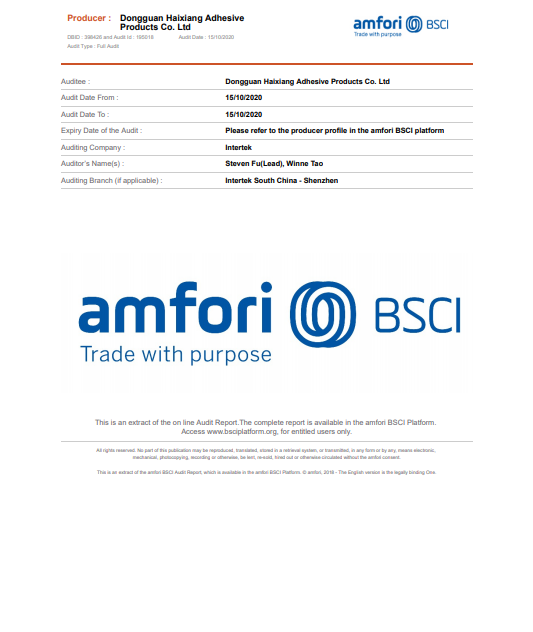 | Dongguan Haixiang Adhesive Products Co., Ltd |