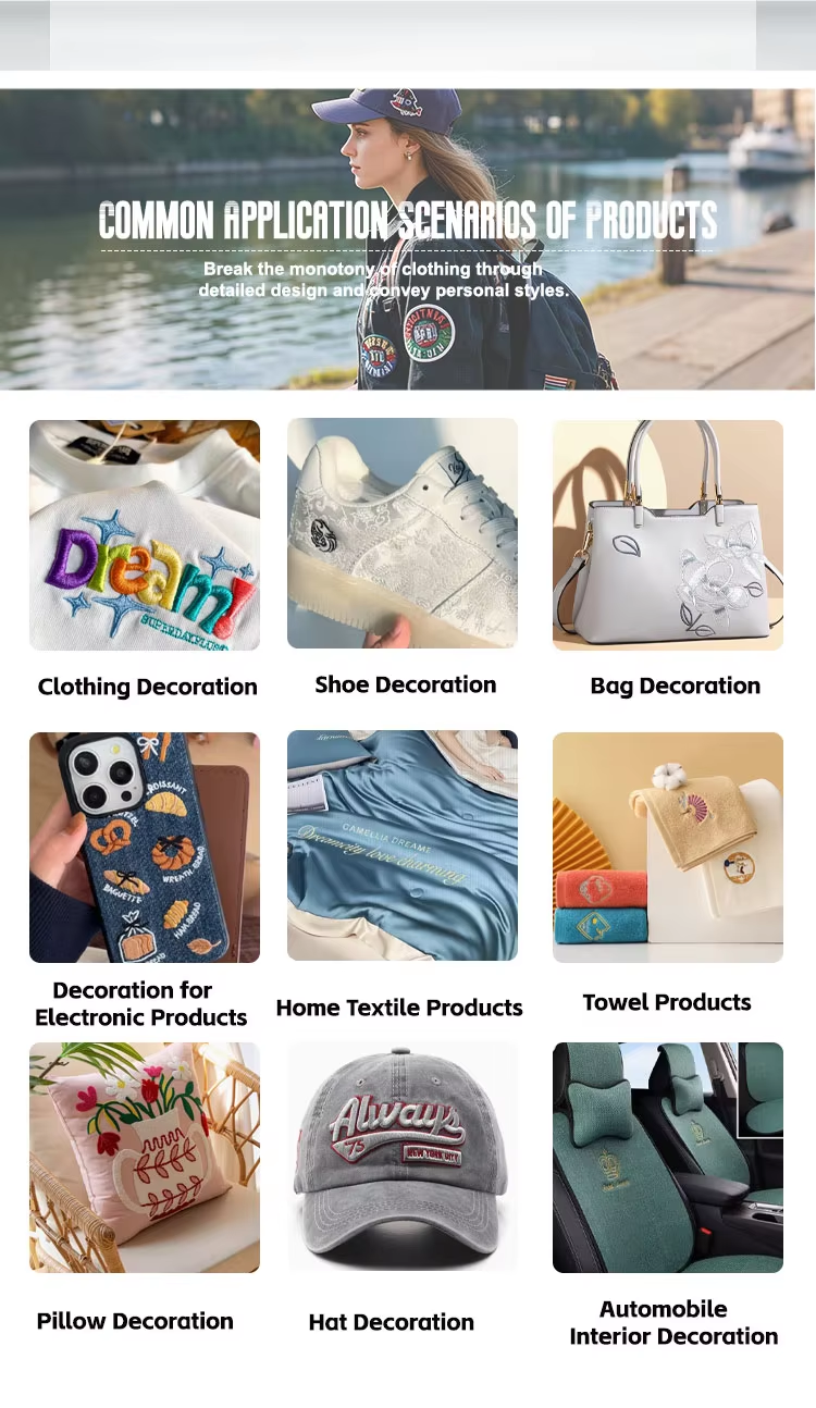 Widely Used for Garment, Shoes, Bags, Hats and Textils, Gifts, Crafts, Advertisement, Promotion, Collection, Souvenir etc