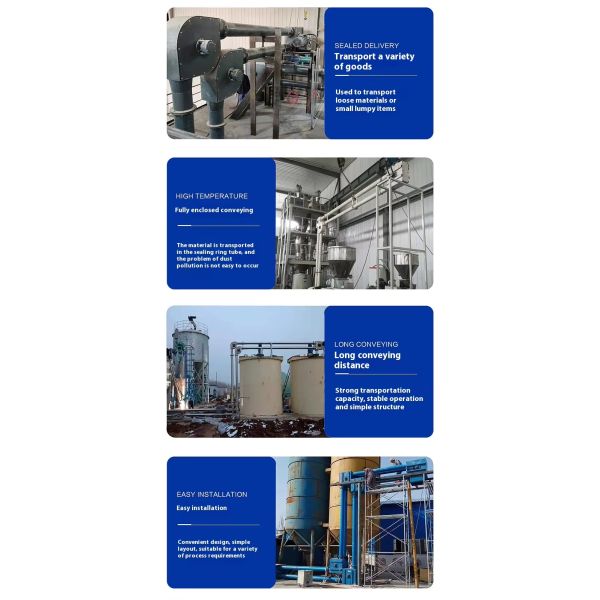 Energy-Efficient and Adaptable: Features stable conveying speeds and low power consumption; demonstrates excellent adaptability to most powdered materials, particularly suited for long-distance, high-capacity transportation.