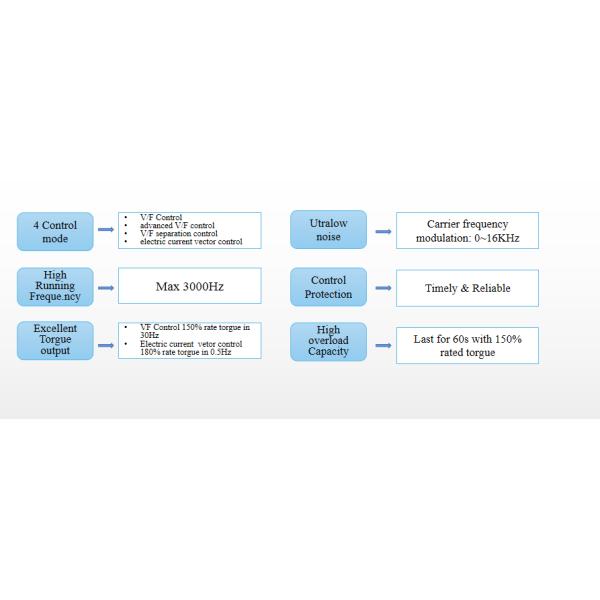 | Control Mode | V/F control, advanced V/F control, V/F separation control, electric current vector control | |