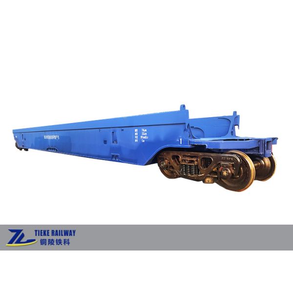 It adopts 25t axle load meter gauge ride control casting bogie. The bolster and side frames are made of B+ grade cast steel; the main friction plate of the combined inclined wedge is made of polymer composite material, and the inclined wedge body is bainitic ductile iron; the wear plate of the side frame column is made of 45 steel, and the wear plate of the slideway is made of T10; a two-stage stiffness spring is adopted; a lower center plate with a diameter of 355mm is adopted, and a conductive polymer composite center plate wear plate is installed in the lower center plate; HDSA rolled steel wheels are equipped with 352226X2-2RZ bearings, 50 steel axles and LM wear-type treads; the basic braking device adopts Austrian-Bainite ductile iron bushings and channel steel brake beams.
