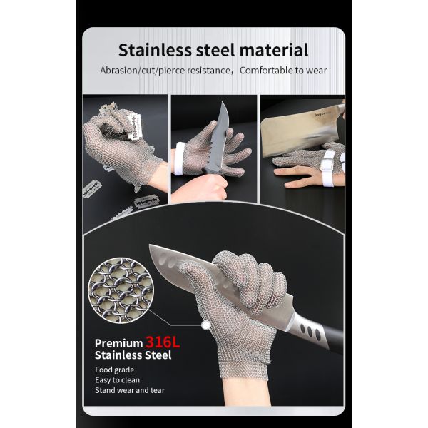 316L Stainless Steel Gloves for Butchers Chainmail Design for Protection Welded Mesh Technique Wire Material Processed Welding