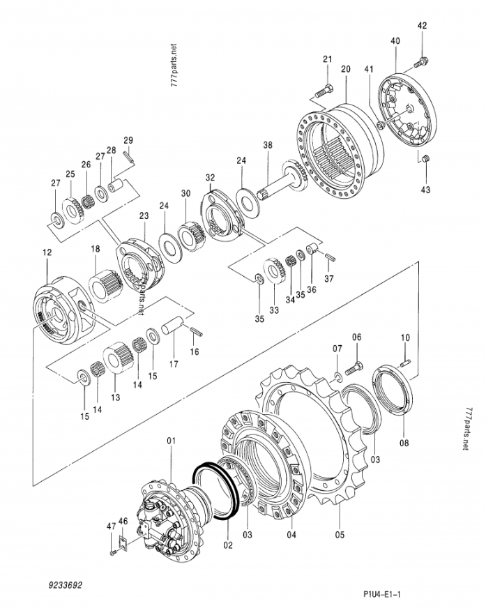 Swing motor, Travel motor, Final drive, Swing gearbox, Travel