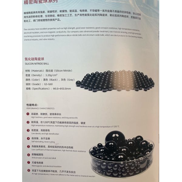 SI3N4 ceramic balls are widely used in precision machinery, aerospace, and automotive industries due to their excellent mechanical strength and thermal stability. They are ideal components in high-speed bearings where traditional steel balls would fail due to heat and stress. The black/gray color of the silicon nitride ceramics also indicates its purity and consistency, making it suitable for visible parts that require both aesthetic appeal and functional performance.
