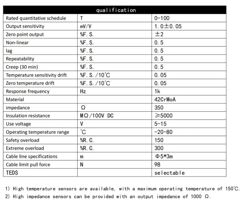 | Rated Output | mV/V | 1.0±0.05 |